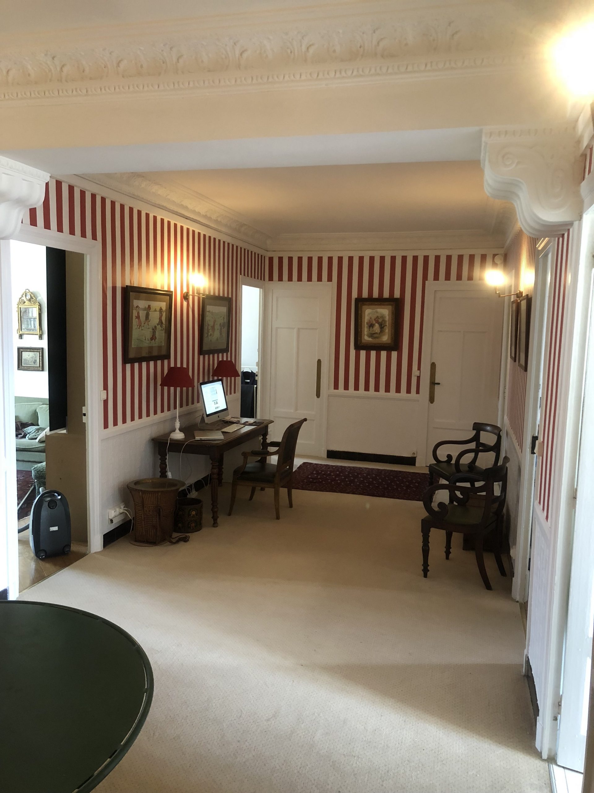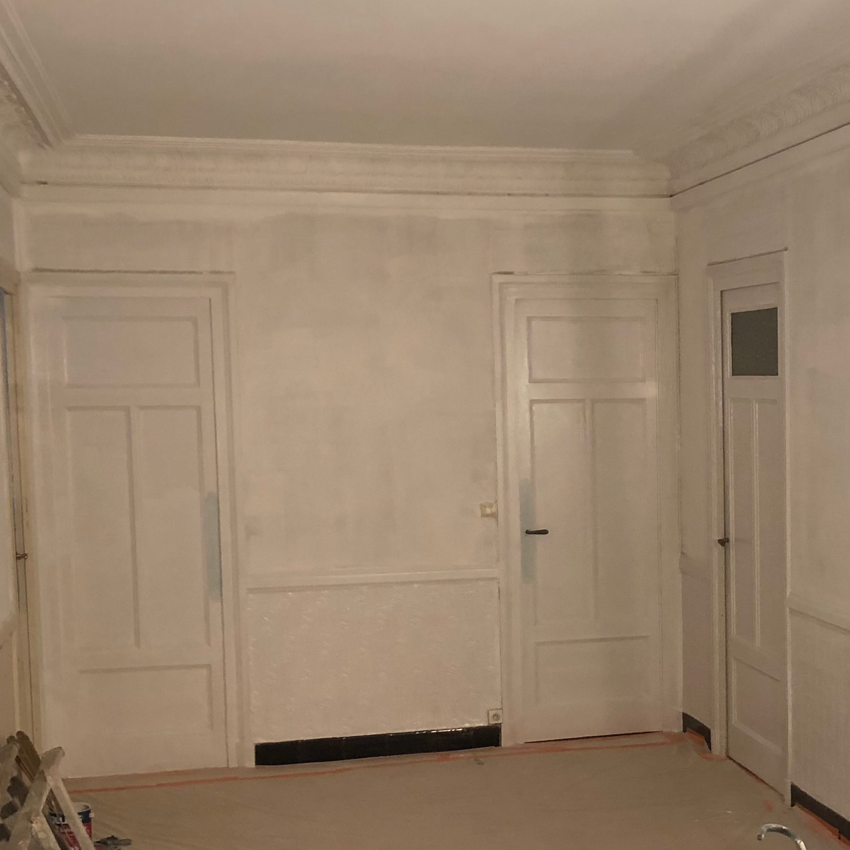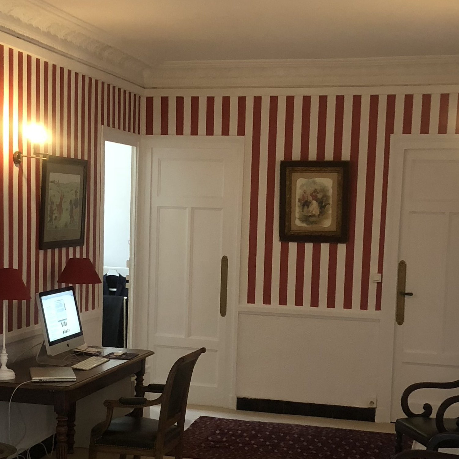 Les travaux ont consisté en une mise en peinture complète et la pose de tapisserie, transformant l’entrée en un espace accueillant et chaleureux.