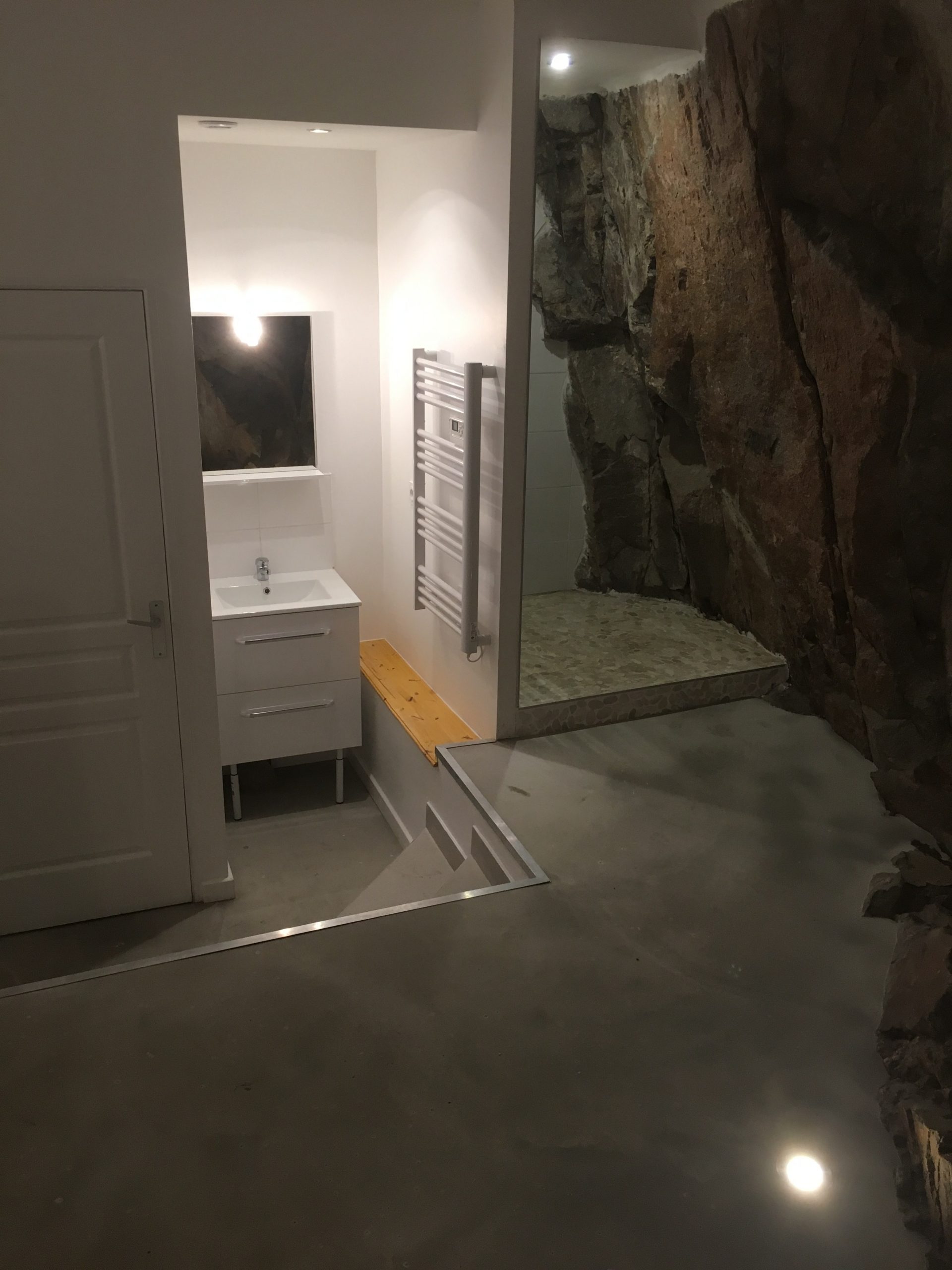 Ce projet unique a nécessité une adaptation technique spécifique en raison de la conception à même la pierre.